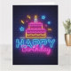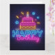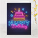 Cartão de Aniversário - Luzes de Neon de Bolo de A