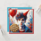Um adolescente bonito comemorando seu aniversário. As saudações no cartão são "Parabéns". Na parte traseira da placa está uma pequena versão da imagem frontal e muito espaço para escrever uma mensagem. Feito com o auxílio do Al Night Cafe (Copilot).