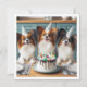 Uma ilustração engraçada e doce de papilões com bolo de aniversário e chapéus de festa de visto. Este é o cartão perfeito para amantes de papilões e amantes de cachorros pequenos. O cartão pode ser totalmente editado e personalizado de acordo com suas necessidades.