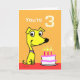 O cachorro amarelo está pronto para apagar as velas do terceiro bolo de aniversário.