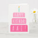 Cartão de Aniversário para Aai. Se você chamar sua mãe Aai em vez da mãe, este cartão de aniversário é perfeito para ela. (Aai significa mãe em Marathi.) Sua aai também vai adorar o design cor-de-rosa gradiente ombre deste cartão de aniversário com um bolo de aniversário que diz "Feliz aniversário Aai!" Torne este cartão personalizável! Clique em "Editar Design", "Dentro Inferior/Direita: Texto e imagens", "Texto" e "Adicionar texto" para escrever a sua própria mensagem personalizada e personalizada no Aai dentro!