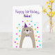Cartão de aniversário para Abba. Se você chamar seu pai de Abba em vez de Pai, este cartão de aniversário é perfeito para ele. (Abba significa pai em Hebraico e Bengali.) O vosso abba vai adorar o design bonito, moderno, colorido, ao estilo escandinavo deste cartão de aniversário, que apresenta um ursinho de ursinha marrom e cinza com um chapéu de festa roxo e boliche e um confete rosa, amarelo e azul com o texto "Feliz aniversário, Abba!" Torne este cartão personalizável! Clique em "Editar Design", "Dentro Inferior/Direito: Texto e imagens", "Texto" e "Adicionar texto" para escrever a sua própria mensagem personalizada e personalizada em Abba dentro!