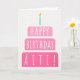 Cartão de aniversário para Äiti. Se você chamar sua mãe Aiti em vez da mãe, este cartão de aniversário é perfeito para ela. (Äiti significa mãe em finlandês.) Seu aiti também vai adorar o design cor-de-rosa gradiente ombre deste cartão de aniversário com um bolo de aniversário que diz "Feliz aniversário Äiti!" Torne este cartão personalizável! Clique em "Editar Design", "Dentro Inferior/Direita: Texto e imagens", "Texto" e "Adicionar texto" para escrever a sua própria mensagem personalizada e personalizada para Äiti dentro!