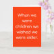 Um cartão de aniversário para Baby Boomers que, como crianças, continuavam desejando ser mais velhos.
