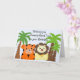 Um cartão de aniversário da selva. Um adorável tigre e seu amigo sotaque de leão esta excelente, com palmeiras soprando ao fundo.
