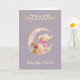 Cartão de aniversário para uma menina de um ano com um elefante bebê sentado numa lua floral. Feliz Aniversário é um estilo de faixa. As palavras na dentro podem ser alteradas. Obrigados para a Creative Fabrica para alguns dos elementos na design.