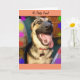 Este cartão de aniversário apresenta um German shepherd alegre e as palavras "É o tempo do partido!" na frente. A dentro tem a seguinte redação: "Feliz aniversário, seu filhote de sorte!".