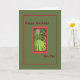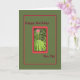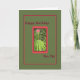 Cartão verde médio com uma fronteira vermelha que envolve plantas e flores. Cartão perfeito para enviar ao seu amigo Caneta.