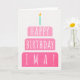Cartão de aniversário para Ima. Se você chamar sua mãe Ima em vez da mãe, este cartão de aniversário é perfeito para ela. (Ima significa mãe em hebraico.) Sua mãe também vai adorar o design cor-de-rosa verde deste cartão de aniversário com um bolo de aniversário que diz "Feliz aniversário Ima!" Torne este cartão personalizável! Clique em "Editar Design", "Dentro Inferior/Direita: Texto e imagens", "Texto" e "Adicionar texto" para escrever a sua própria mensagem personalizada e personalizada no Ima dentro!
