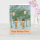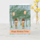 Este cartão bonito tem um fundo de floresta ilustrado, com dois jovens meninos ilustrados caminhando e segurando grandes balões de laranja. A floresta é cheio de flores silvestres e gramíneas diferentes. Obrigados para Bsilvia, Hungryjpeg e Design para alguns dos elementos do design.