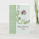 Bonito design com um boião de tulipas e um design de tulipas no boião. O boião está rodeado por uma espiral cardíaca em verde mais escuro com pontos nos corações enquanto o lado esquerdo do cartão tem uma borda de fêmur. O fundo é verde claro e as tulipas são roxas e uma lavanda leve. Obrigados para greenbulbgang, Hungryjpeg, restos comerciais e escovas de lojas para alguns dos elementos do design.