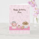 Cartão de aniversário para sua Mãe com chá, migalhas, um bule de chá, flores e um fundo de designer de cor-de-rosa. Obrigados para Hungryjpeg e Creative Fabrica para alguns dos elementos do design.