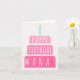 Cartão de aniversário para a Mana. Se você chamar sua mãe Mana em vez da mãe, este cartão de aniversário é perfeito para ela. (Mana significa mãe em grego.) Seu mana também vai adorar o design cor-de-rosa gradiente ombre deste cartão de aniversário com um bolo de aniversário que diz "Feliz aniversário Mana!" Torne este cartão personalizável! Clique em "Editar Design", "Dentro Inferior/Direita: Texto e imagens", "Texto" e "Adicionar texto" para escrever a sua própria mensagem personalizada e personalizada no dentro de Mana!