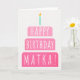 Cartão de aniversário para Matka. Se você chamar sua mãe Matka em vez da mãe, este cartão de aniversário é perfeito para ela. (Matka significa mãe em polonês, checo, eslovaco e bielorrusso.) Seu matka também vai adorar o design cor-de-rosa verde deste cartão de aniversário com um bolo de aniversário que diz "Feliz aniversário Matka!" Torne este cartão personalizável! Clique em "Editar Design", "Dentro Inferior/Direito: Texto e imagens", "Texto" e "Adicionar texto" para escrever a sua própria mensagem personalizada e personalizada no dentro de Matka!