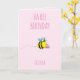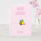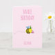 Belo cartão de aniversário pintado tem abelha, apresentando um pedaço segurando um bolo de aniversário rosa. Personalize este dentro de cartão e fora dele com sua própria mensagem.