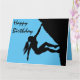 Uma carta de aniversário totalmente personalizável para o alpinista em sua vida apresentando trabalho de arte da conhecida artista britânica Jane Tellam de uma silhueta de uma mulher que brinca com a saudação de "Parabéns" e um verso de saudação de aniversário na dentro. Trabalho de arte copyright Mindgoop