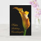 Um lírio de arum ouro está iluminado do lado. Uma flor perfeita para transmitir seus desejos de aniversário.
