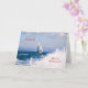 Um iate que navega sobre o oceano com espirro acena. Um cartão de aniversário do divertimento para um pai. Um cartão para tudo que barcos de amor e o oceano. A mensagem interna pode ser mudada a suas exigências.