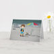 Cartão de aniversário para seu filho com a imagem de um garotinho na praia com seu cachorro, uma cadeira de praia e cupcakes. Obrigados à hungryjpeg para alguns dos elementos da design.