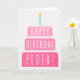 Cartão de aniversário para Peder. Se você chama seu pai Peder em vez de Pai, este cartão de aniversário é perfeito para ele. Peder significa pai em Bolonha. Seu peder também vai adorar o design cor-de-rosa verde deste cartão de aniversário com um bolo de aniversário que diz "Feliz aniversário Peder!" Torne este cartão personalizável! Clique em "Editar Design", "Dentro Inferior/Direito: Texto e imagens", "Texto" e "Adicionar texto" para escrever a sua própria mensagem personalizada e personalizada no dentro Peder!