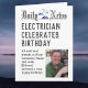 Cartão de aniversário em forma de jornal. Cartão de aniversário de um eletricista. Sua escolha de nome e foto foram adicionadas como a pessoa cujo aniversário é.