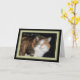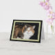 Um gato do Calico na frente deste cartão é o design perfeito para uma pessoa que ama animais, gatos e natureza. Este cartão será muito apreciado por esta pessoa especial.