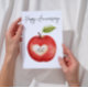Celebre seu amor com esta elegante carta de aniversário de aquarela apresentando um charmoso design de maçã vermelha com um coração talhado personalizável exibindo suas iniciais. A parte de trás do cartão oferece espaço para uma foto personalizada e uma mensagem sincera, fazer-a uma manutenção verdadeiramente especial. Perfeito para casais celebrando marcos ou compartilhando sua história de amor.