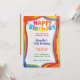 Um cartão de aniversário vibrante com recortes coloridos e ondulados de papel que criam um quadro semelhante ao arco-íris. Perfeito para uma celebração alegre e festiva.