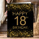 Cartão de aniversário preto Dourado 18º