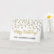 Cartão de aniversário para a irmã com ouro e teste padrão moderno preto dos confetes.