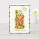 Com um adorável cartão de aniversário adequado para menino ou menina com uma bela imagem religiosa vintage do Menino Jesus e rosas amarelas.