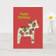 O design neste cartão é dos cavalos de madeira cinzelados e pintados por Julia Morrill
