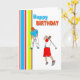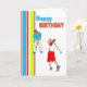 Cartão de aniversário temático Golfing com listras verticais. Projetado belamente em cores brilhantes zingy.