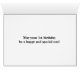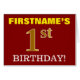 Este design de cartão de saudação de aniversário apresenta uma mensagem como "primeiro aniversario do FIRSTNAME!", com as "1ruas" a terem uma aparência de cor falsa/imitada em ouro. O nome do destinatário na frente pode ser personalizado, e o fundo frontal é vermelho colorido. Também apresenta uma mensagem de saudação de aniversário personalizada no dentro. Um cartão de aniversário como este talvez pudesse ser dado a alguém em comemoração do seu primeiro aniversário. [~Z0000184]