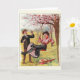 Cartão de saudação de Vintage/Aniversário Vitoriano. Um casal adorável, aproveitando um dia no parque! Linda mulher andando em uma árvore balançando como seu parceiro bonito e carinhosamente vigia! Expressão perfeita de amor para qualquer ocasião!