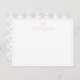 Cartão de nota de berçário elegante com um charmoso padrão de hydrangea e trellis de arco cor-de-rosa no verso, emparelhado com um mínimo de design frontal, incluindo uma ilustração de arco delicada e uma tipografia refinada. Uma escolha perfeita para mensagens doces e notas de manutenção.