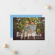 Que bom que esperamos o cartão de anúncio de gravidez fotográfica para os Big Brothers com azul no verso.