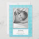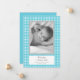 Um doce anúncio de bebê apresentando um padrão de gingham azul. Você pode personalizar facilmente este adorável anúncio de aniversário com suas fotos e detalhes.