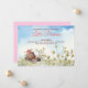 Conte a todos a sua emocionante notícia com esta encantadora design com a sua ilustração de uma linda menina de olhos largos com uma coroa princesa, em uma cena ao ar livre, com grama, calçados e flores. Personalize facilmente o texto e você pode alterar o plano de fundo cor-de-rosa no sentido inverso, se desejar, por meio da opção Clique para personalizar mais.