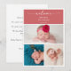 Dê as boas-vindas ao seu precioso pacote de alegria com este cartão de anúncio de bebê com foto chic minimalista elegante. O design simples e atraente apresenta um layout branco limpo para exibir as primeiras fotos do seu bebê. O modelo oferece espaço para uma mensagem personalizada de gratidão para compartilhar com amigos, familiares e entes queridos.