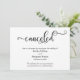 Se você está enfrentando a infeliz necessidade de cancelar seu casamento, esta peça pode atender às suas necessidades. A distinção deste conjunto se deve à elegante escrita cursiva usada para frases de destaque. Neste design, a fonte caligráfica foi usada para criar um gráfico vívido que representa a palavra "cancelado". Há também uma versão com a grafia alternativa. Use os campos do modelo para adicionar seus detalhes pessoais e tornar este design único seu. O fundo branco pode ser alterado para qualquer cor que você preferir. Por favor, entre em contato para qualquer solicitação especial ou para assistência na personalização. // 86//