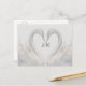 Cisnes adornam estes cartões de anúncio de casamento proporcionando um visual romântico. Ótimo para ocasiões especiais. Basta adicionar seus monogramas e detalhes da data. Você também pode usar o modelo para adicionar o nome e o endereço do destinatário para ter impresso diretamente no cartão (ou optar por outra opção). Use o modelo para criar seu próprio cartão de anúncio de casamento com cisnes românticos.