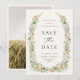 Anuncie seu dia especial com estilo com este cartão de "Save the Date" sofisticado, apresentando uma moldura de flores silvestres ilustrada com beleza. O design combina uma paleta de cores boho atemporal com tipografia moderna, criando um sentimento luxuoso e romântico. Adicione sua foto no verso.