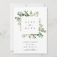 Este convite de casamento apresenta folhagem de eucalipto pintada em aquarela, folhas verdes e moldura quadrada. Para personalização avançada deste design, clique no link "Personalizar ainda mais". Itens correspondentes também estão disponíveis.