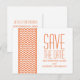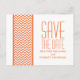 Cartão de Anúncio de Data de Casamento elegante e moderno com borda de padrão de chevron simples em laranja e branco. Este design sofisticado definirá o tom para um casamento elegante. Fácil de personalizar, basta adicionar os detalhes do seu casamento nos campos de texto fornecidos. Clique em "Personalizar" para encontrar mais opções de personalização.
