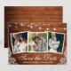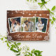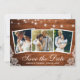 Cartão de Anúncio de Noivado com Luzes de Corda de Madeira Rústica e Renda 3 Fotos