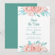 Cartão de Anúncio de Data de Pêssego e Turquesa