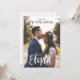 Compartilhe suas grandes notícias de elopemento com esta caligrafia "Nós Elografamos" enquanto apresentava o novo marido e esposa duo. Esta placa apresenta um cobrir de fotos personalizado e uma introdução de sobrenome em uma elegante tela moderna. No verso, dentro de uma borda fina estão os detalhes do seu casamento. Sinta-se à vontade para adicionar uma mensagem pessoal ou mais detalhes sobre seu dia especial e se você comemorar quando voltar!
