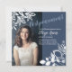 Mudanças inesperadas de data podem acontecer. Envie aos seus convidados compreensivos um cartão de adiamento ou mudança de data azul cinza, e deixe-os saber que um convite formal seguirá! A moldura de renda branca mostrará sua foto lindamente. Esses cartões de anúncio de adiamento são encantadores com papelaria e detalhes de festa coordenados. Personalize facilmente este cartão para um Bat Mitzvah, Quinceanera, aniversário de adolescente, casamento, formatura ou celebração de aniversário que precise ser adiada.