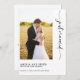 cartão com fotos de casamento recem casados. Apresentando uma bela caligrafia moderna com pestanas e uma mensagem personalizada no verso para mais detalhes. Kimberly Brett.